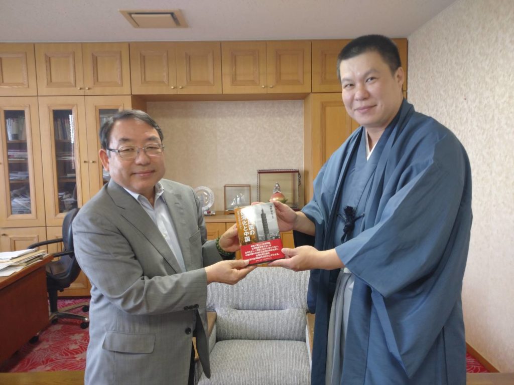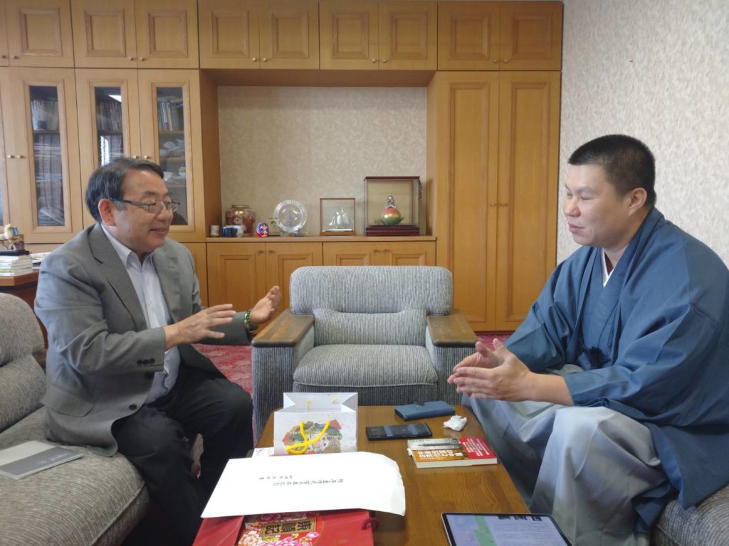 同日午前、陳さんは、埼玉県日台親善協会会長である浅野和生平成国際大学副学長と対談され、台湾における日本の神社跡の現状、桃園神社における祭神の状況などについて話しました。