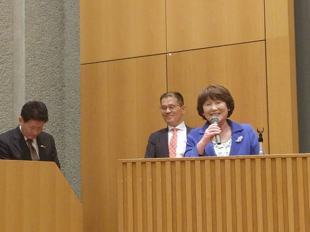 浅野和生会長の開会のご挨拶(上写真)の後、地元の小野克典市長、澁谷光章商工会長にもお言葉をいただきました。